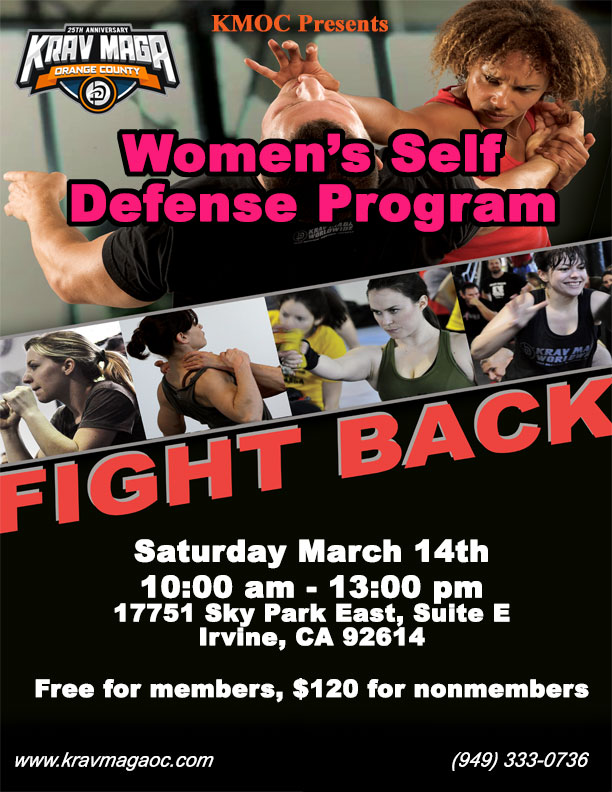 Krav Maga of Orange County is hosting a 3- hour self-defense seminar for women. This program will be held on Saturday, March 15th from 10:00a - 1:00p at our Irvine location.